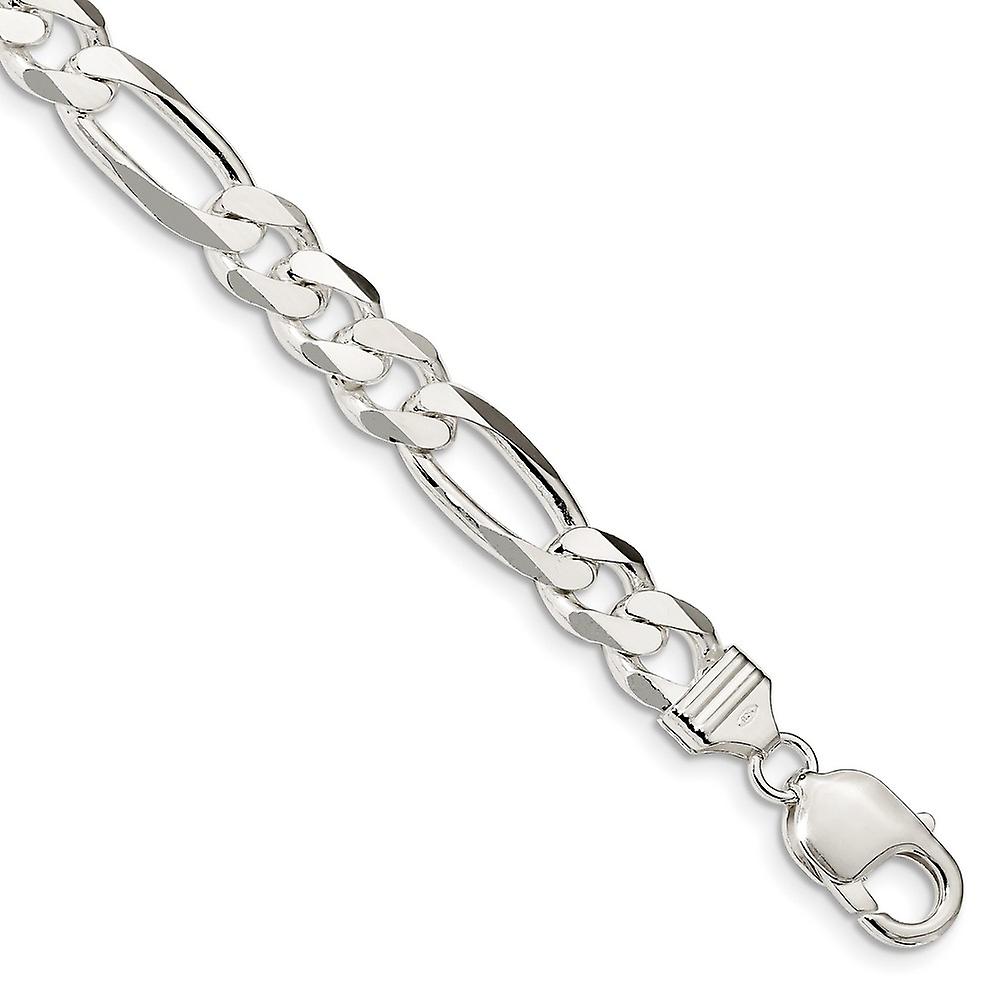 925 Sterling Silver Solid Polished 9mm Figaro Chain Bracelet Lobster Claw Link-Bracelet for Women and Men - Length: 8 to