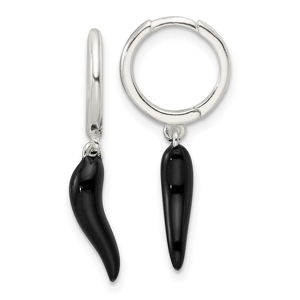925 Sterling Silver E coating Black Enamel Italian Horn Long Drop Dangle Earrings 26x11.25mm Wide-Dangle Earring for Wom