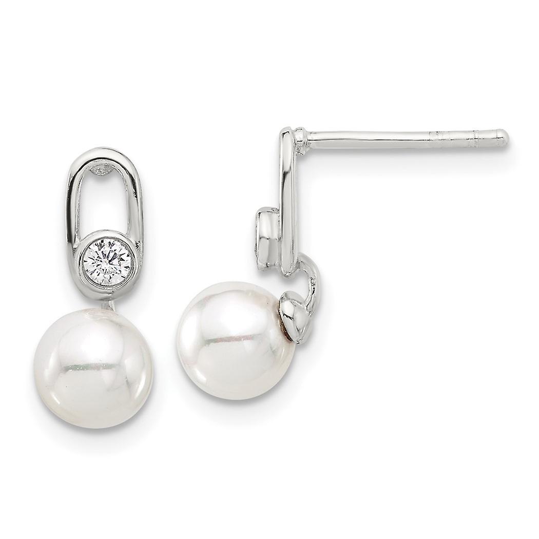 925 Sterling Silver E coated 6 7mm Shell Pearl With Cubic Zirconia Post Earrings 14.8mm long Stud Earring for Women