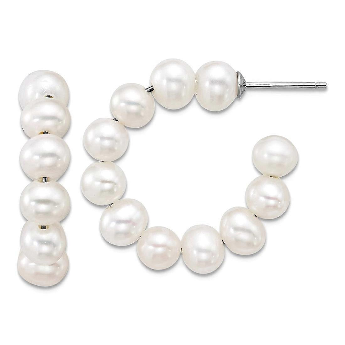 925 Sterling Silver Rhod 5 6mm Semi rnd Freshwater Cultured Pearl Post Hoop Earrings 24.5x28.4mm Wide 5.75mm Thick-Hoop