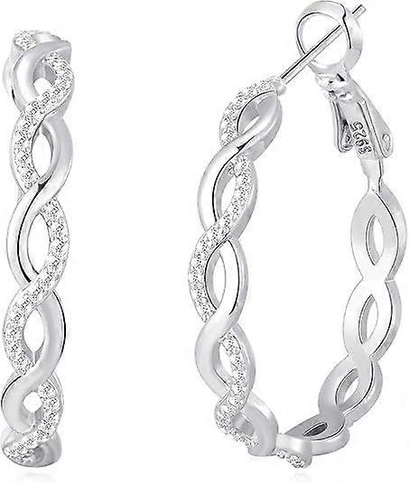925 pure silver earrings women lightweight rotating earrings with square crystal zircon anti-allergic ring-shaped earrings (30MM)