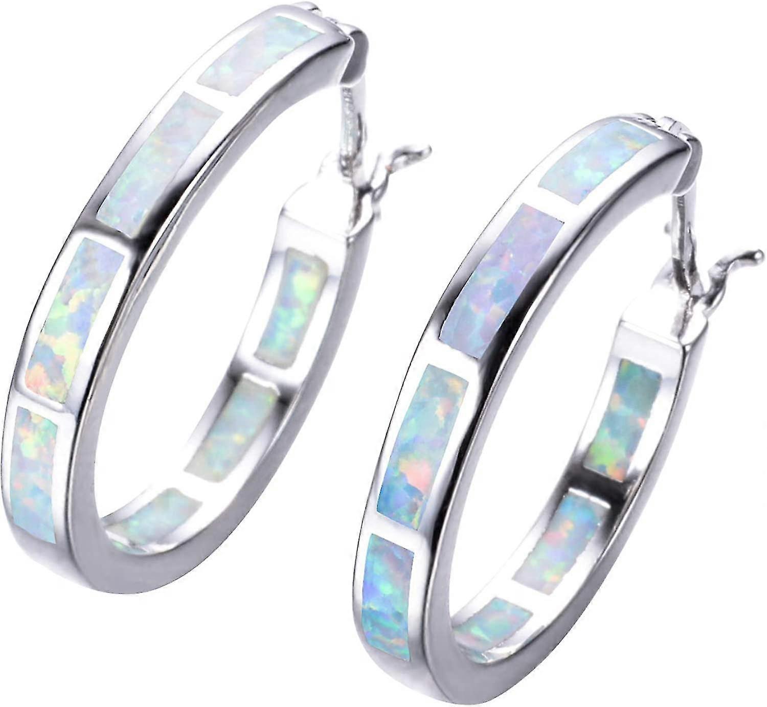 925 Sterling Silver Womens Hoop Earring Made Blue White Fire Opal Women Jewelry Gift