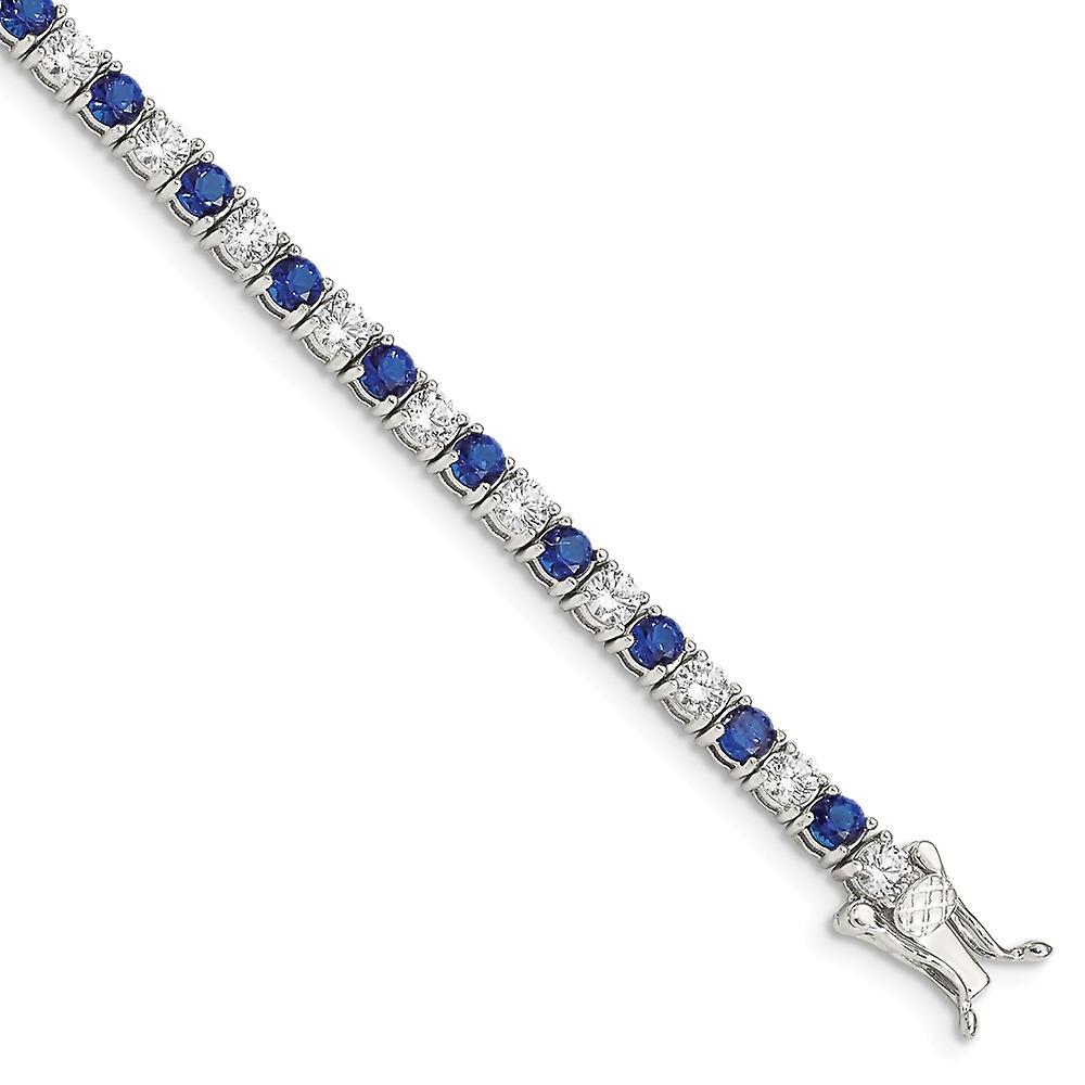 925 Sterling Silver Polished Safety clasp Box Catch Closure Blue and White Cubic Zirconia Bracelet 7 Inch-Box-Clasp Link
