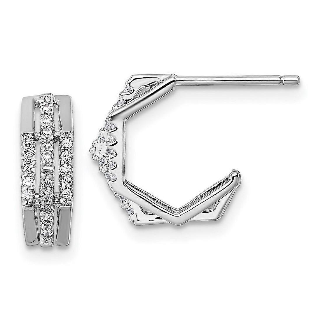 925 Sterling Silver Rhodium Plated Cubic Zirconia Polished Post J hoop Earrings 13.3x13.3mm Wide 4.2mm Thick-Hoop Earrin