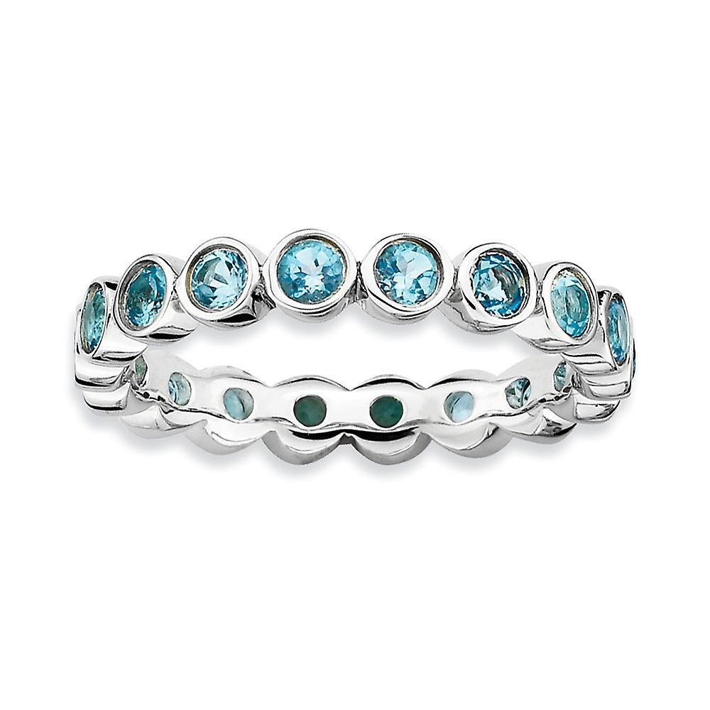 925 Sterling Silver Bezel Polished Patterned Stackable Blue Topaz Ring Stackable Ring for Women - Ring Size: 5 to 10
