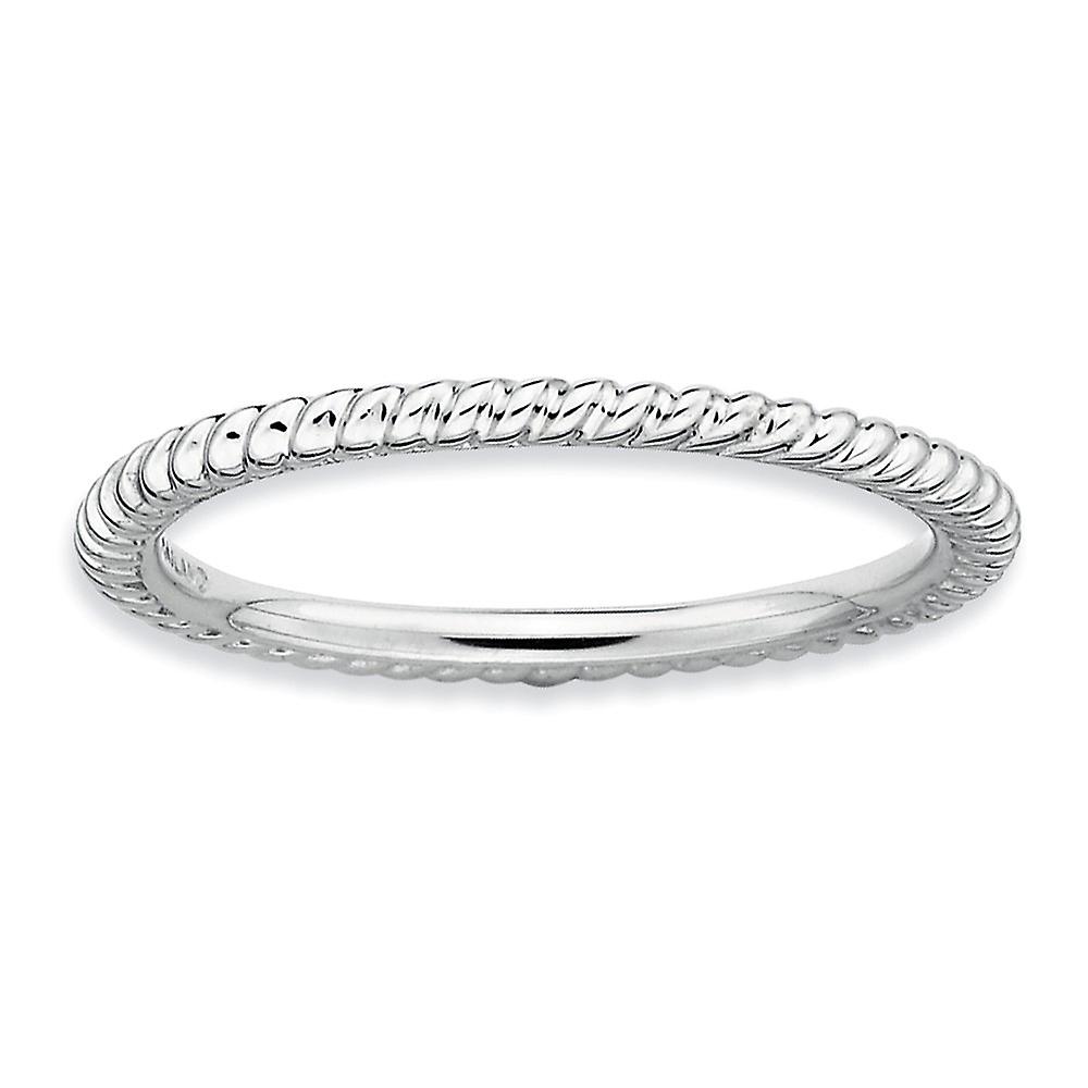 925 Sterling Silver Polished Patterned Stackable Rhodium Twisted Ring Stackable Ring for Women - Ring Size: 5 to 10