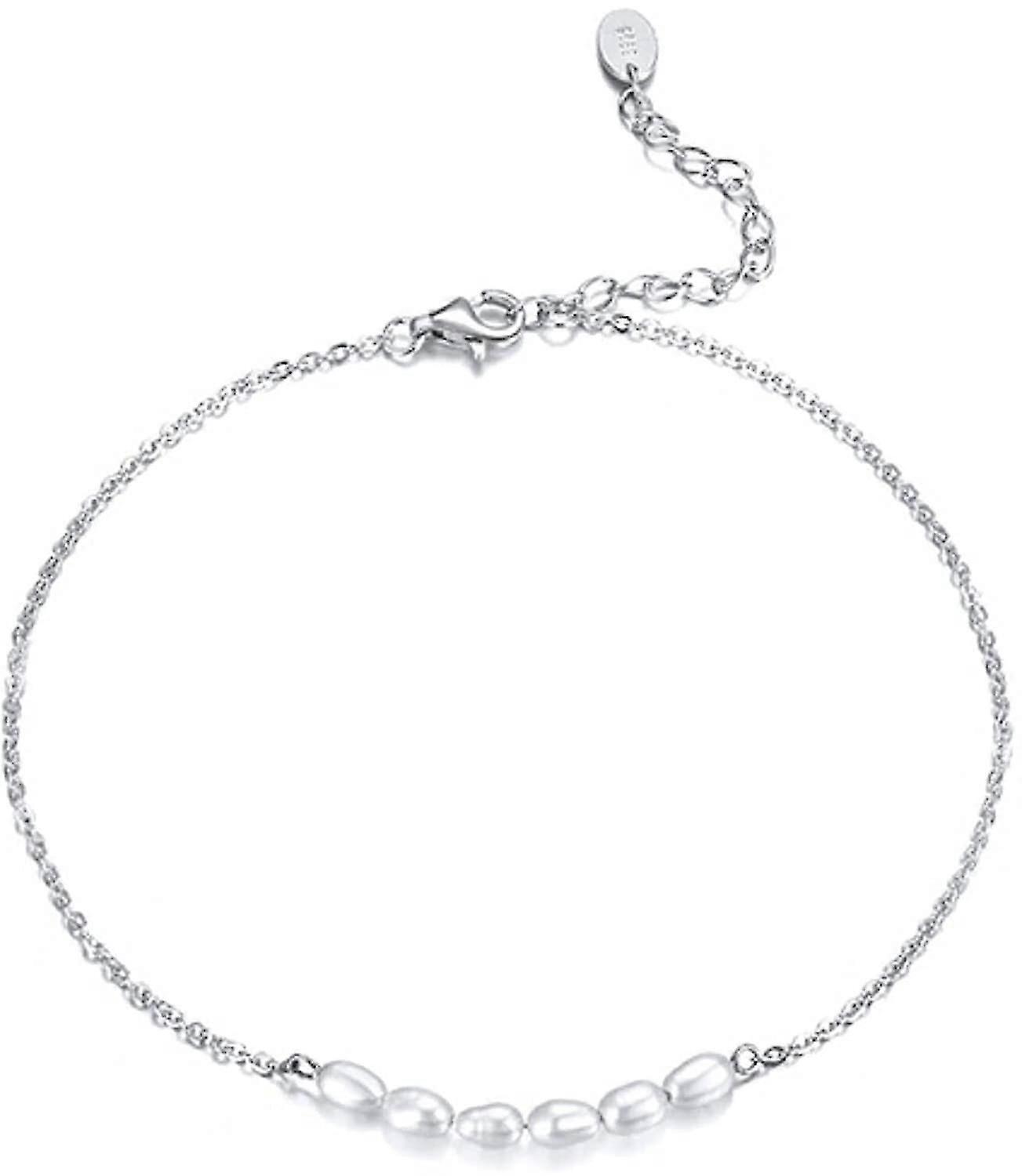 Adjustable Anklet Made of 925 Sterling Silver With 6 Oval Freshwater Pearls. Patriotic Birthday Jewelry Accessory For Girls, Silverb Silver b