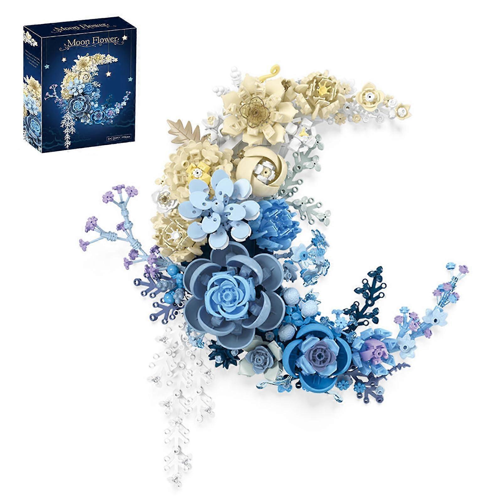 934 PCS Moon Flower Building Block, Exquisite Rose, Blue White Rose Artificial Plant Toys