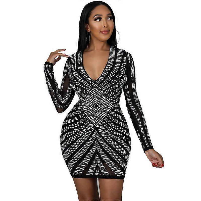 9411 Women's Dress, Evening Dress, Diamond-Encrusted, Long-Sleeved And Short Skirt