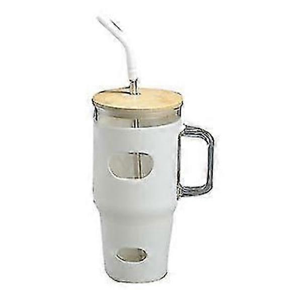 94 cl Glass with Lid and Straw, Glass Water Bottles with Handle, Glass Mug with Silicone Sleeve, good mug