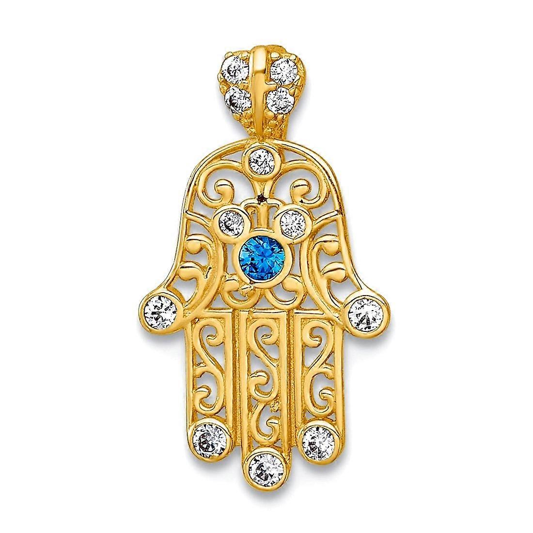 9.4mm 14k Solid Gold Polished White and Blue Cubic Zirconia Hamsa Chain Slide Pendant Chain Necklace for Women and Men