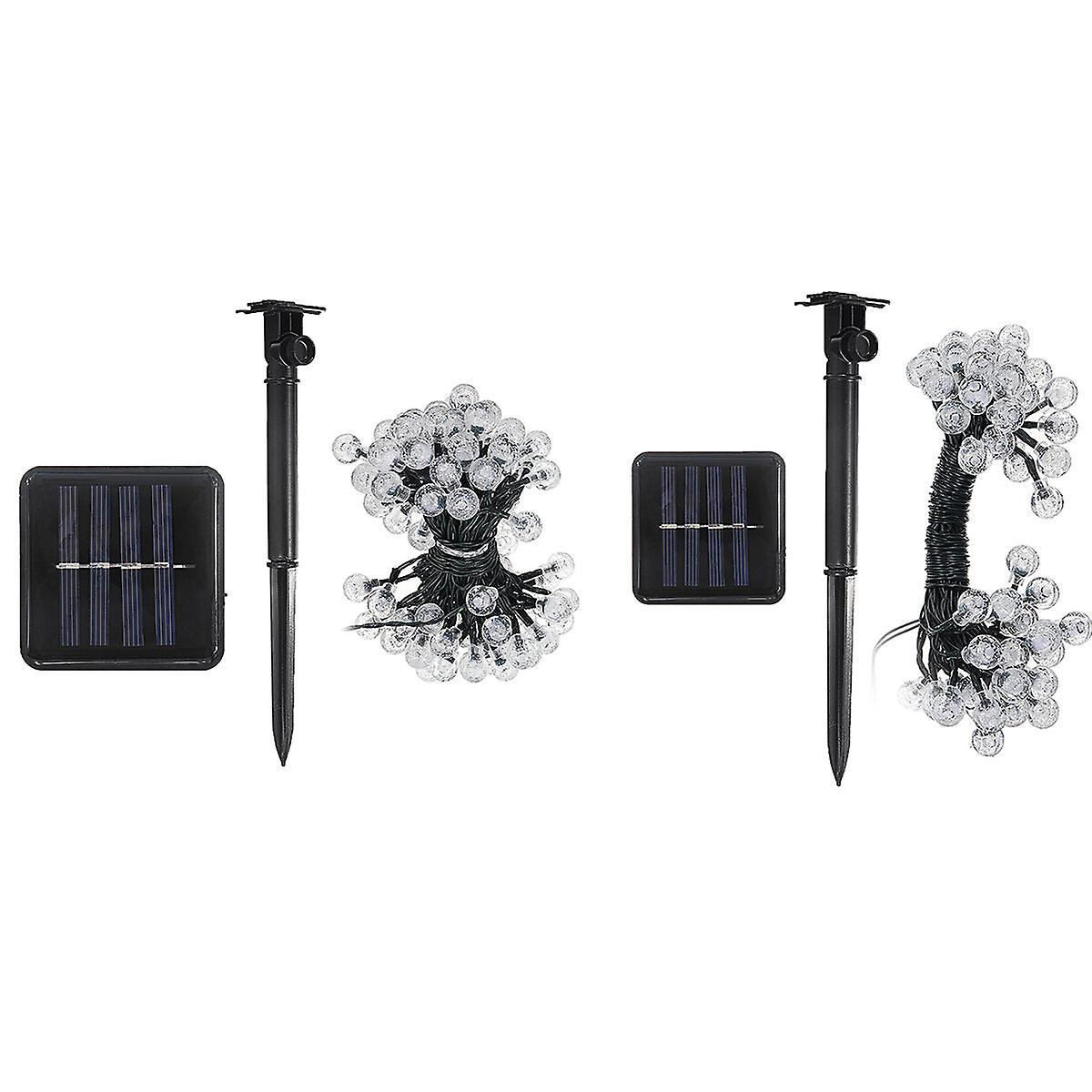Specification: Solar panel: 2V 100mA. Rechargeable Ni-MH battery: 600mAh. Light color: warm white. Switch: ON/OFF, MODE. Charging time: 6 hours. Working time: 8 -10 hours. Material: plastic. Number of lights: 50 LED / 100 LED. Diameter of bulb: 1.8CM (0.7").  50 LED String Length: 9.5M (31.2FT). 100 LED String Length: 12M (39.4FT). Feature: Solar & durable- solar panel charges battery on sunny and cloudy days. Lights automatically turn on at night with continuous lighting up to 8hrs. These waterproof LED lights are strong durable hard plastic, cost-saving, Eco friendly, and reusable. Useful & safe - This solar string lights can serve multiple purposes, for example, night lighting, gifts, home decor, commercial promo. Its low working voltage is safe to use for family with children. Waterproof (IP65) - Protect the lights for indoor and outdoor use perfectly. The best choice on any occasions. Long working time - After charging during the day for 6-8 hours, the 1.2V 600mAh batteries will provide power for 8-10 hours at night. Easy to install- No wiring, No electricity cost. Put on wall, window, door, floor, ceiling, grass, Christmas tree or building, Add perfect environment to your place. How to check the string lights work during Daytime? A.Completely cover the solar panel ,the String Lights will light up. B.If not ,Leave the solar Panel in the sun for an hour and then completely cover the solar panel again and it should light up. Package included: 1 x LED globe lights. 1 x ground stake. 1 x solar panel