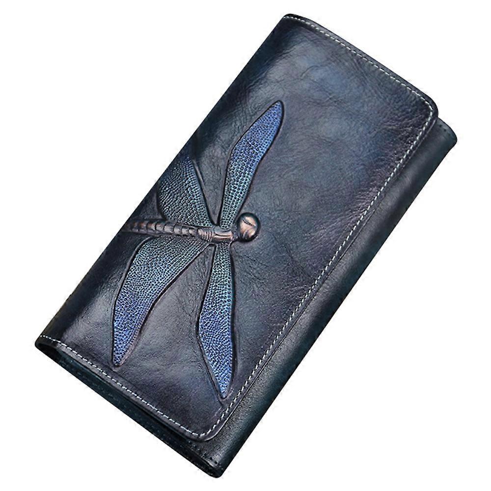 9630 Women Long Wallet Cowhide Leather Carving Design Billfold Cash Coin Storage Bag Clutch Purse