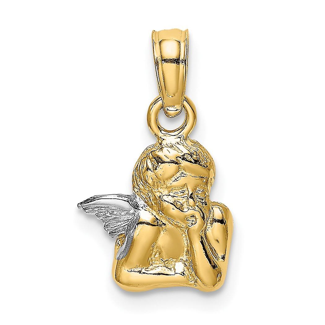 9mm 10k Religious Guardian Angel Resting Elbow With Rhodium Wing Charm Pendant Necklace for Women