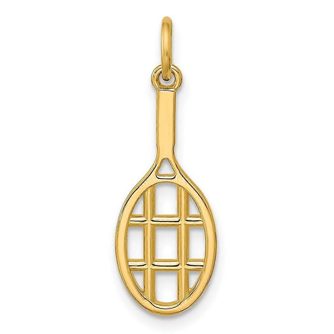 9mm 14k Solid Yellow Gold Polished Tennis Racket Pendant Necklace-Pendant for Women - 1.0 Grams