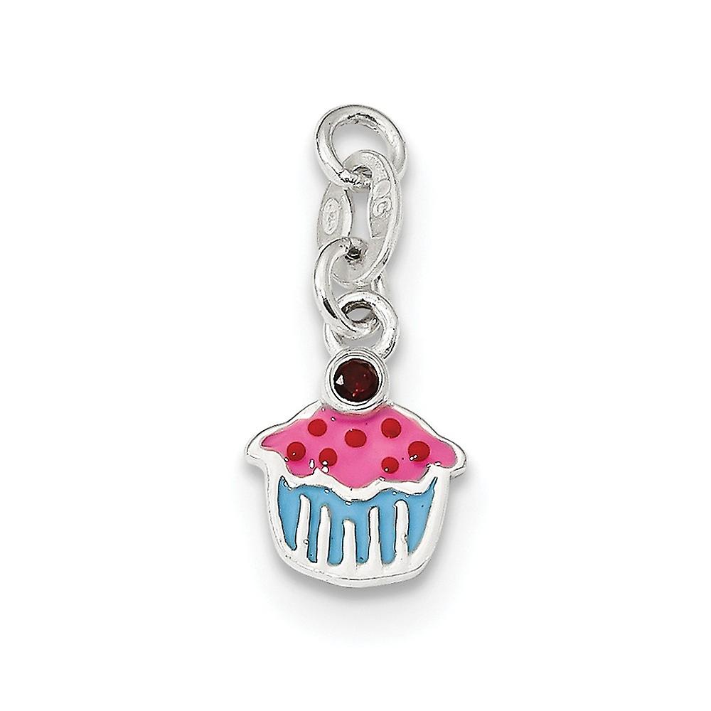 9mm 925 Sterling Silver Polished and Enameled Cupcake With Garnet Charm Pendant Necklace for Women
