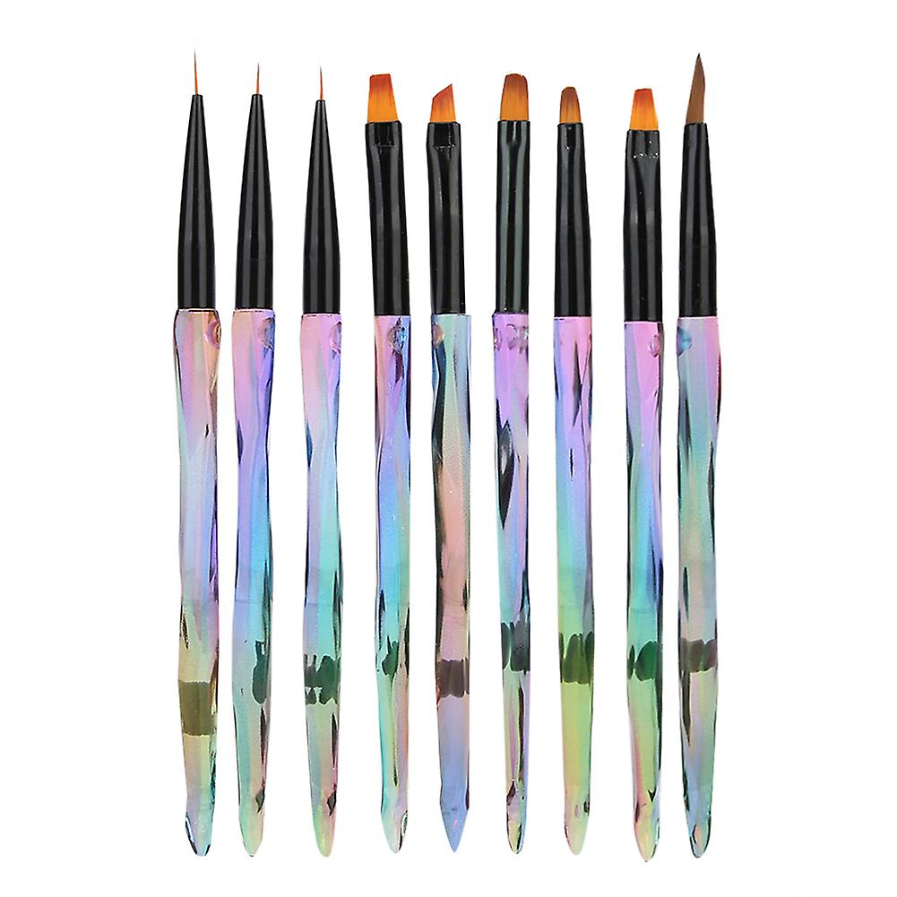 9pcs Gradient Handle Portable Nail Art Brush DIY Flower Pattern Nail Painting Drawing Pen9pcs