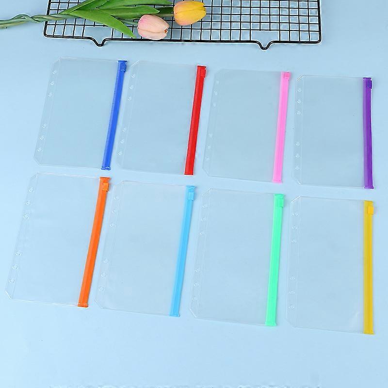 9pcs Binder Pockets A6 Size Multicolor Zipper Folders for 6-Ring Binder Notebook Loose Leaf Bags, Waterproof PVC Pouch Document Filing Bags