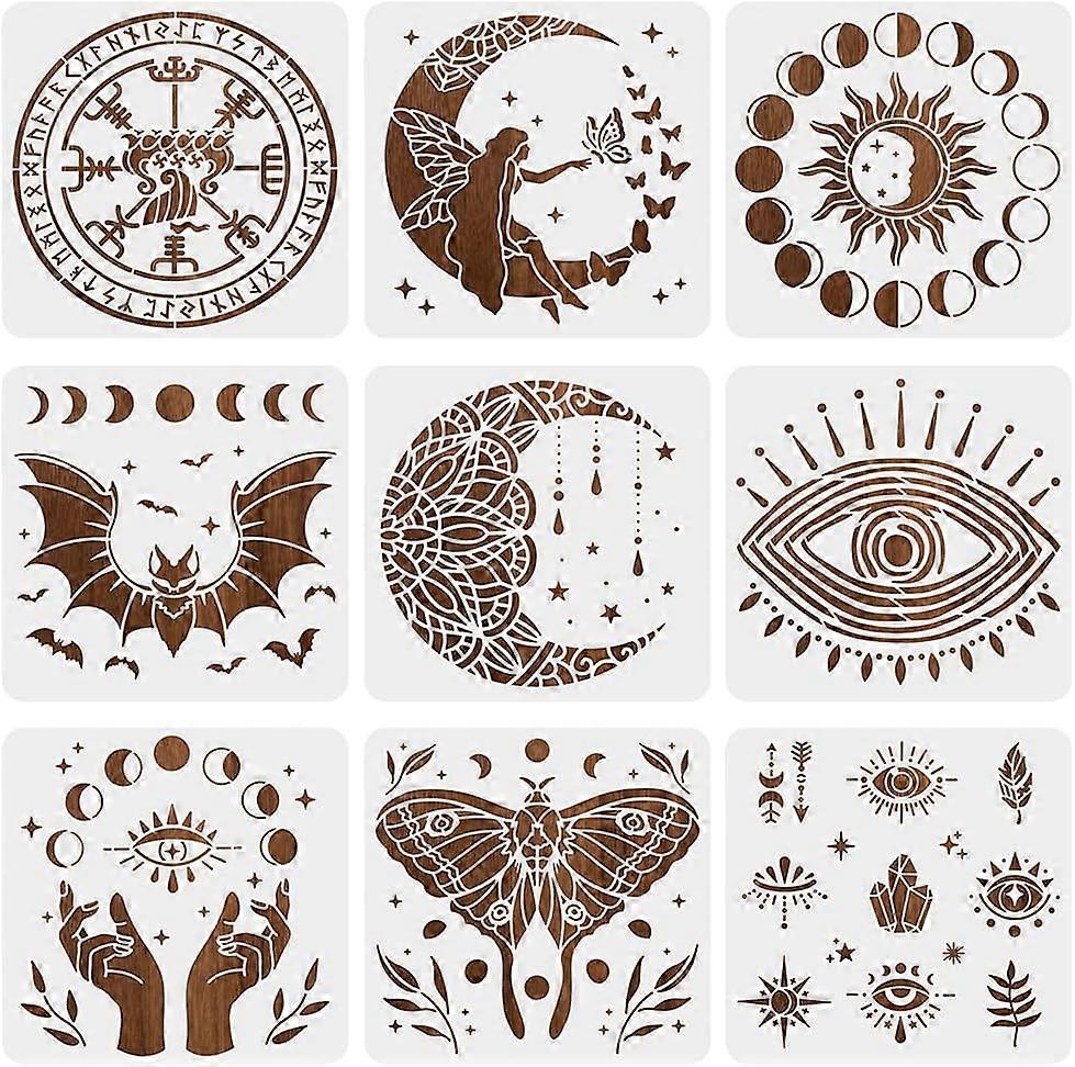 9pcs Magic Theme Painting Stencils 12x12 Inch Moon Fairy Eye Reusable Stencil Cut Painting Template for Painting on Furniture Canvas Home Wall Decor D