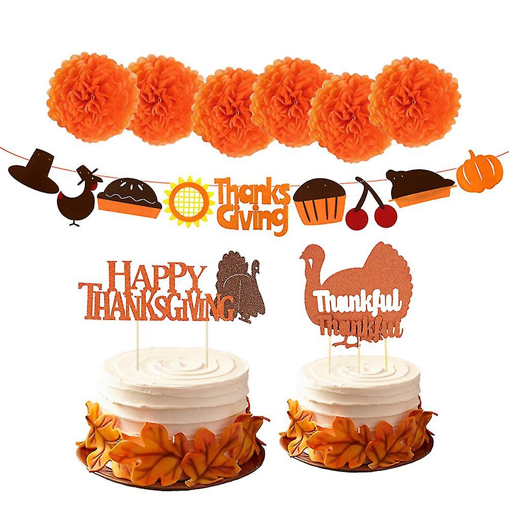 9pcs Thanksgiving Banner Set Paper Flowers Turkey Bunting Flag Turkey Cake Topper Party Favor (paper Flowerx6, Turkey Bannerx1,happy Thanksgiving Topp