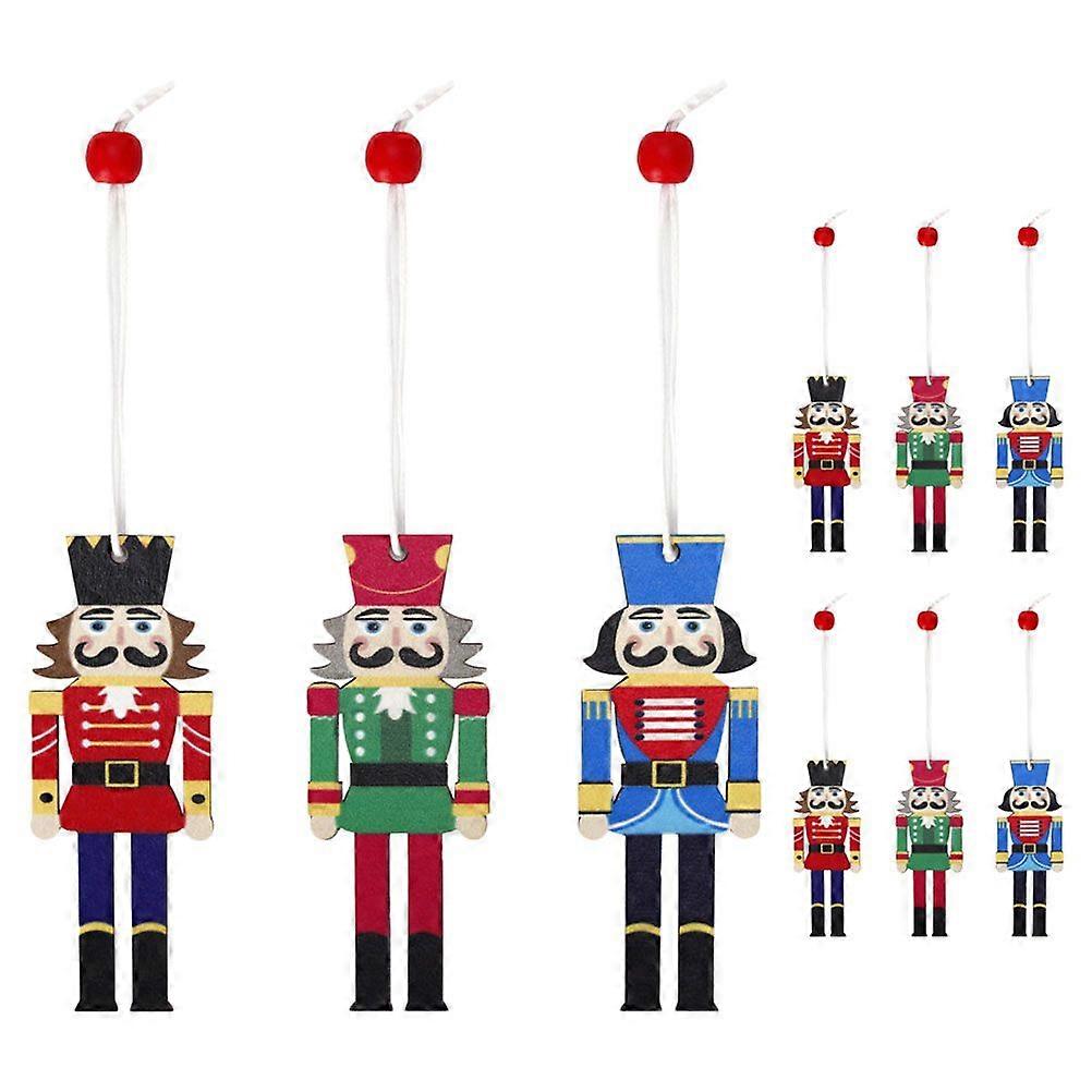 9pcs Wooden Nutcracker Pendants Christmas Nutcracker Soldier Pieces Decoration