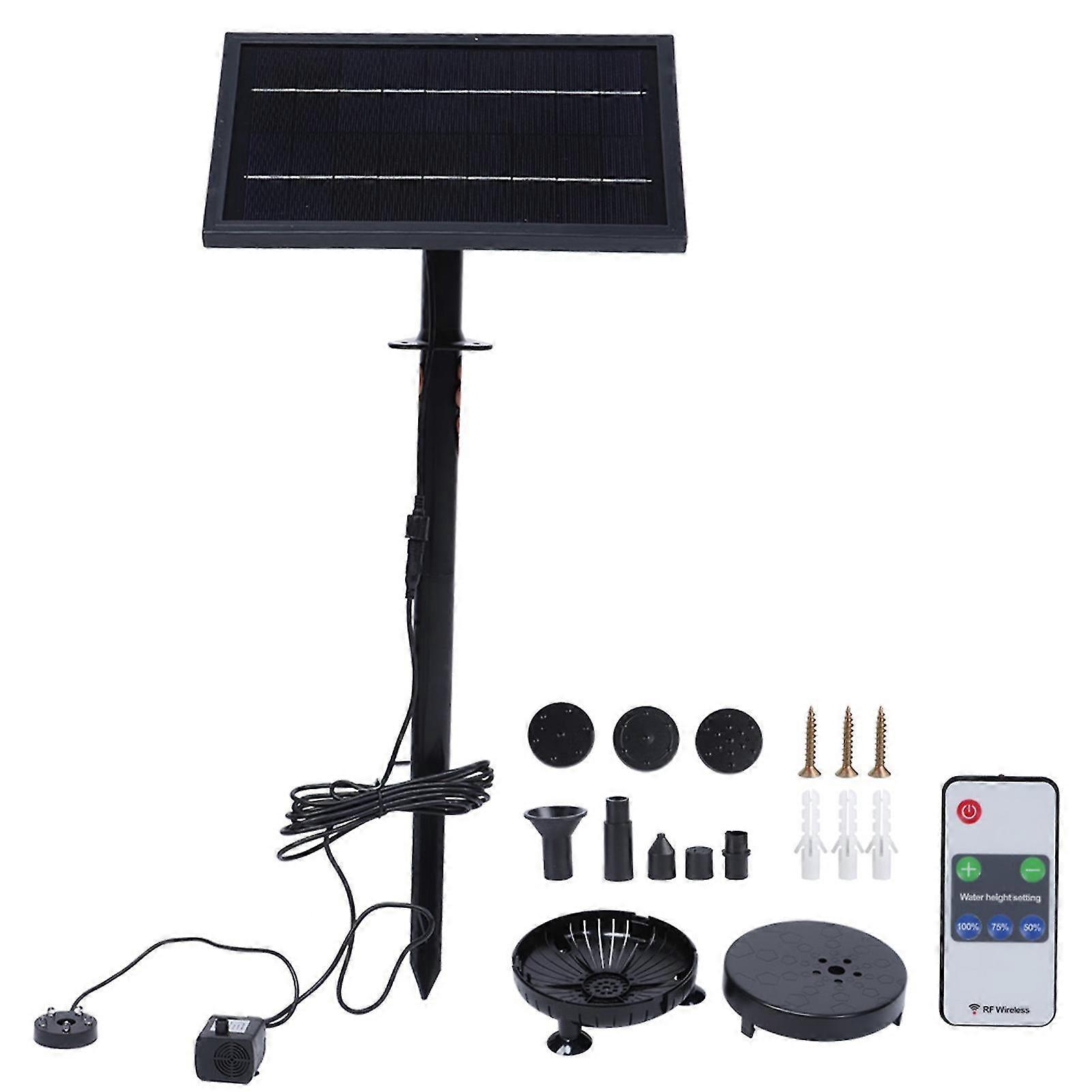 Features 1??Adopts tempered glass solar panel and ABS plastic, beautiful appearance is not easy to scratch, ensuring longer service life and higher conversion efficiency. 2??With light, the water spray effect at night is beautiful. Floating housing and suction cup make the fountain float on the water and be fixed in bird bath. 3??The anti?clogging function effectively extends the life of the pump. Comes with ground insert rod and wall mount function, easy to install and reconfigure. 4??With the function of power storage function, water shortage blocking function, water pump floating filter function and flows adjustment, convenient to use. 5??Multiple nozzles for different water flowing modes, change the nozzle to obtain different effects. Place it under direct sunlight to obtain the best result. Specifications Condition: Item Type: Solar Fountain Material: Tempered Glass Solar Panel + ABS Plastic Solar Panel: 9V / 8W (Tempered Glass Polysilicon) Pump Output: DC 4.5-10V Maximum Flow: 170L/h Maximum Spray Height: 60cm / 23.6in Battery: 18650 Lithium Battery, 7.4V, 2400MAH (Included) Remote Control Battery: 1 x 3V CR2025 Button Battery (Battery Not Included) Working Time: 6-8 hours (battery full charge) Pump Parameters: With three-meter waterproof female cable, pump with light Head: 1.5m / 4.9ft LED Parameters: LED Quantity: 5 x ??5 Round Head LED Color: White / Colorful Change Waterproof Rating: IP65 Scope of Application: Suitable for bird bath, aquarium, small pool, garden decoration, oxygen water circulation, swimming pool, water parks, home garden and other floating decoration. Product Size: Approx. 27.5 x 18.5 cm / 10.8 x 7.3 in Weight: Approx. 1271g / 44.8oz Way of Working: During the day (when the sun is abundant), the pump and LED are powered by solar energy, and the excess power is charged into the battery. When the light is not strong or at night, it is converted to battery powered. Key Description: A. ON/OFF: The main power switch. B. MODE: Provide three levels of water level adjustment. C. Wireless remote control: used to turn the water pump on and off, the remote control distance is about 15m / 49.2ft, frequency: 433.92MHz ?? Water pump switch: turn the water pump on and off. ?? Water flows height adjustment: 7 levels of water flows height adjustment. ?? Water flows height adjustment: 3 levels of water flows height adjustment. Package List 1 x Solar Fountain Panel 8 x Nozzle Accessories 1 x User Manual 4 x Accessories Rod 1 Bag x Accessories (6pcs) 1 x Floating Housing 1 x Suction Cup 1 x Remote Control (Battery Not Included)