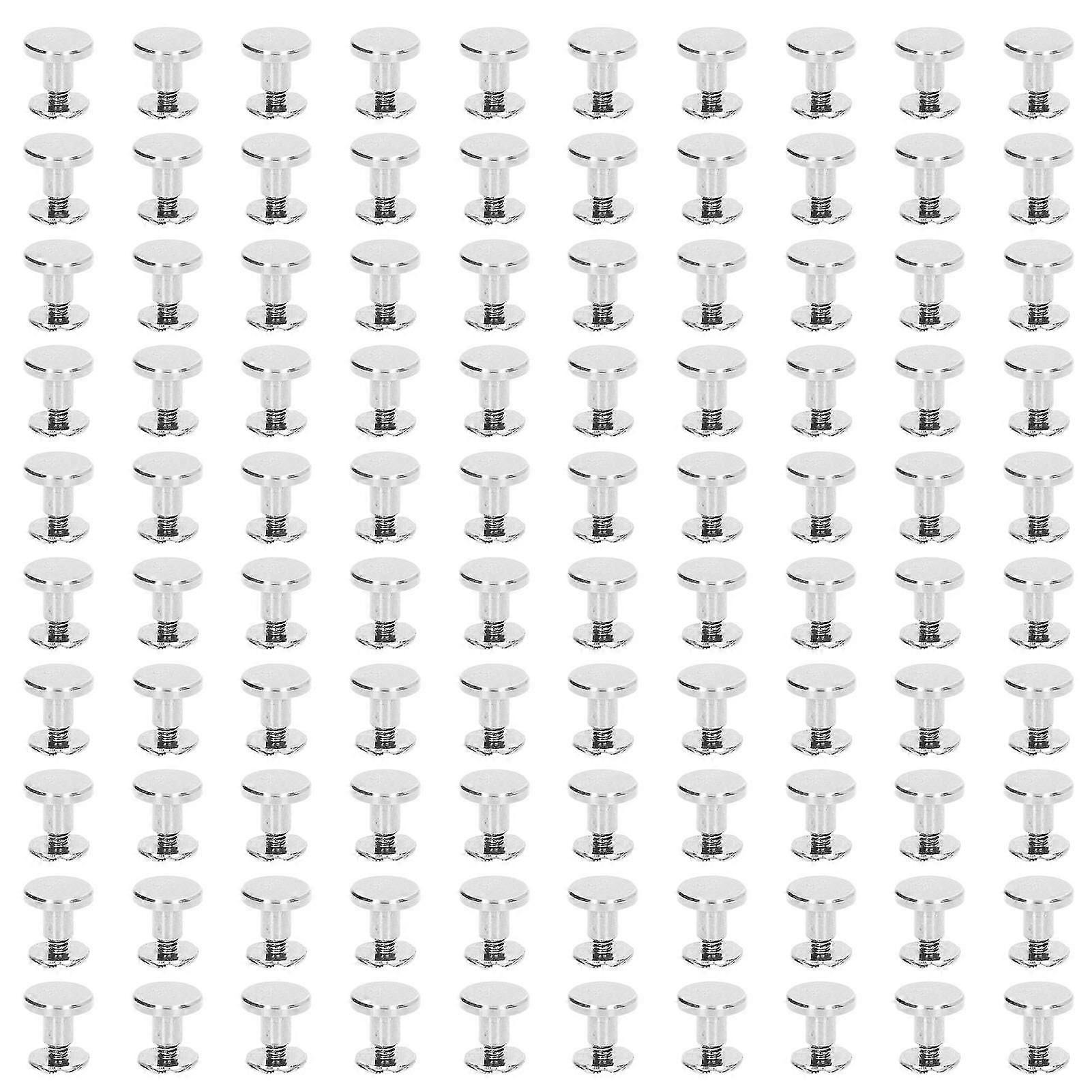 9x5mm Silver Electroplated Brass Chicago Binding Screws - 100 Sets | Round Flat Head Metal DIY Rivets for Leather