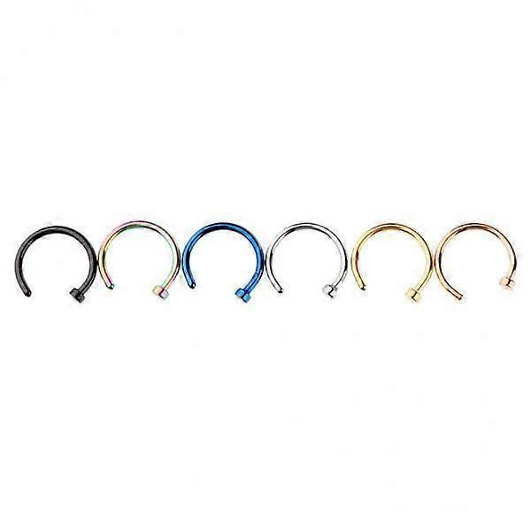 9x6Pcs Assorted Color Stainless Steel C-Shaped Nose Stud Rings 1mm(18g)x8mm