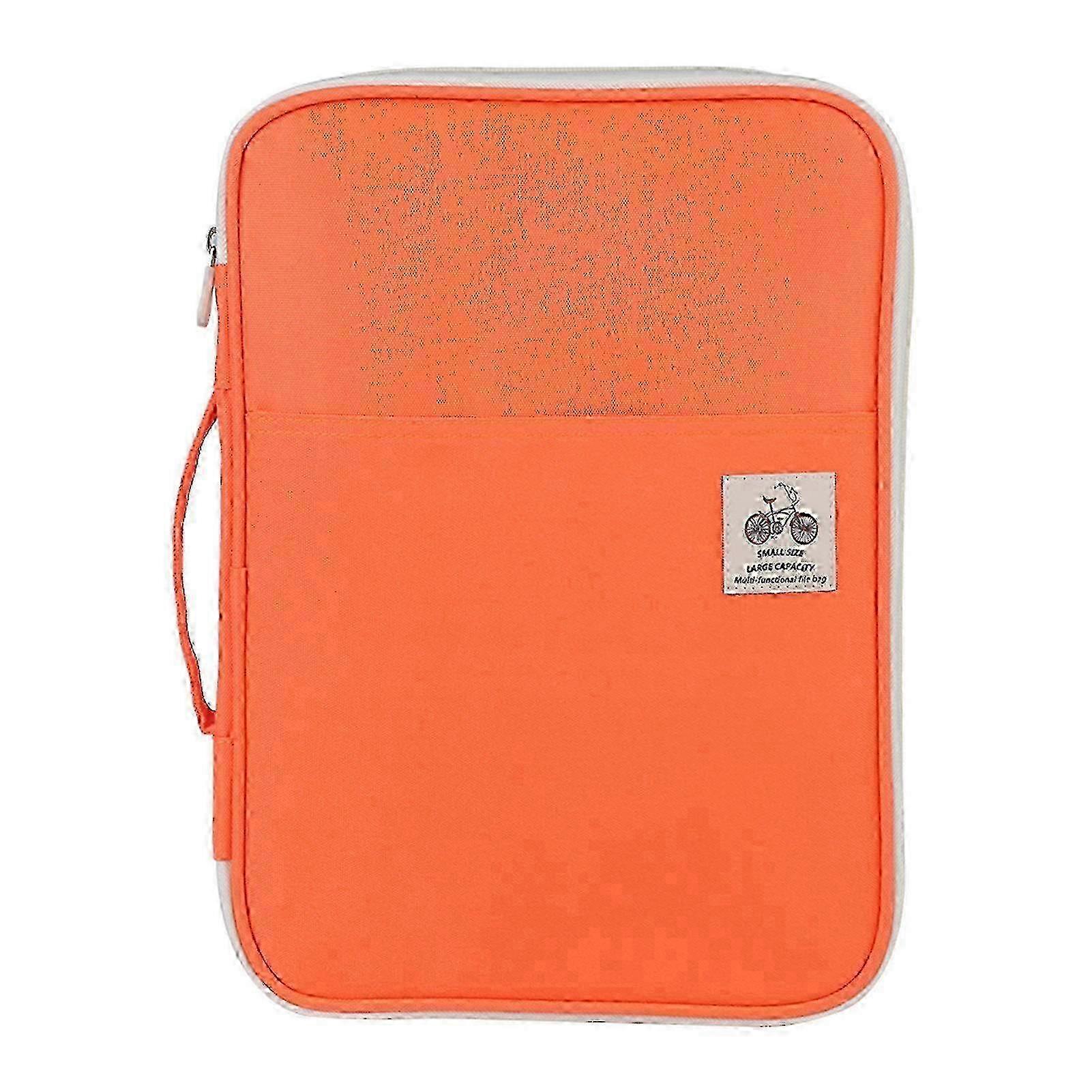 A4 Size Orange Zippered Document Bag Organizer - Durable Folder for Papers, Office Supplies & Travel Accessories
