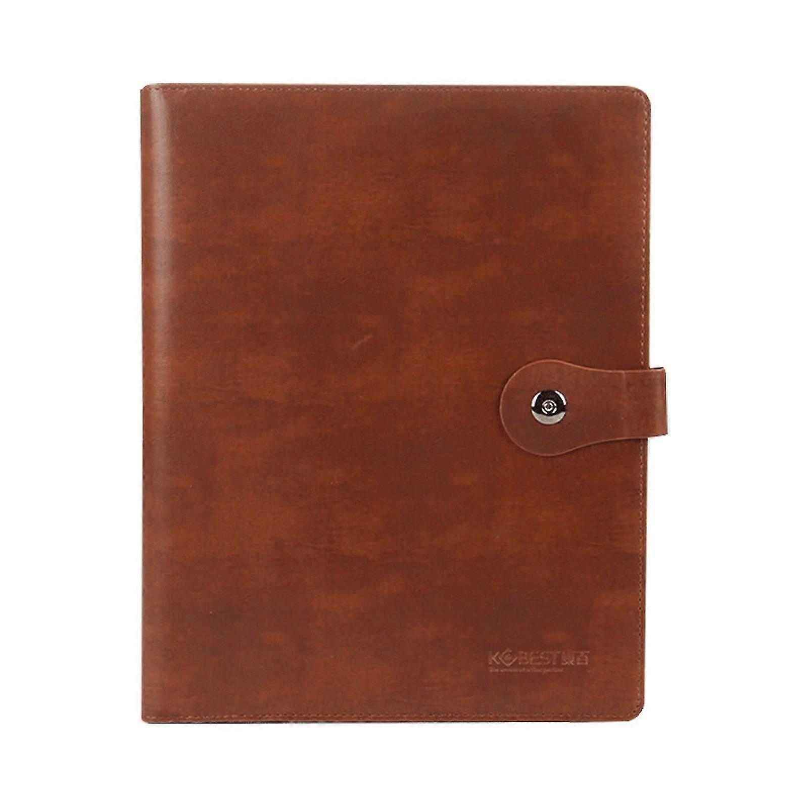 A4 Business Leather Portfolio - With Calculator, Card Slot, Briefcase for Office Documents (Brown)