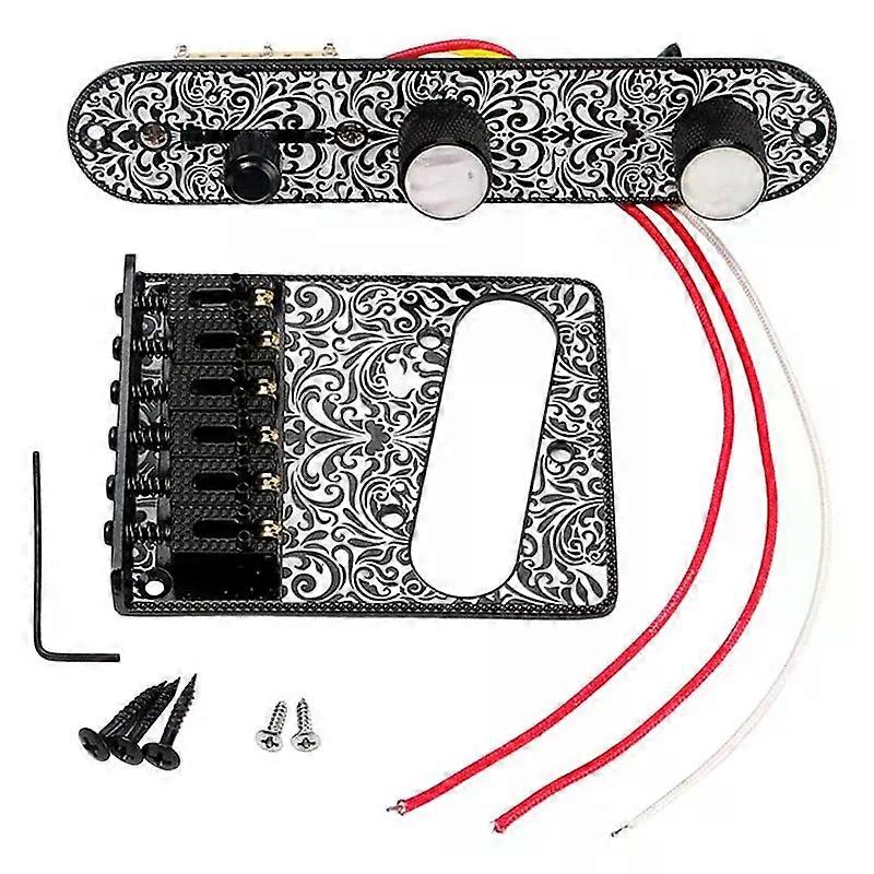 A51Q-Metal Carving Electric Guitar Saddle Bridge Pickup Slot Set For Telecaster Guitar Replacements Black