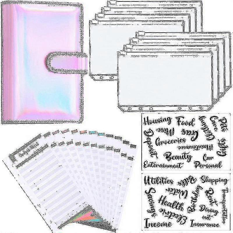A6 Binder Budget Planner Notebook Covers Folder Size 6 Hole Pockets Plastic Zipper Money Saving Envelope Pink Laser- Ssxjv