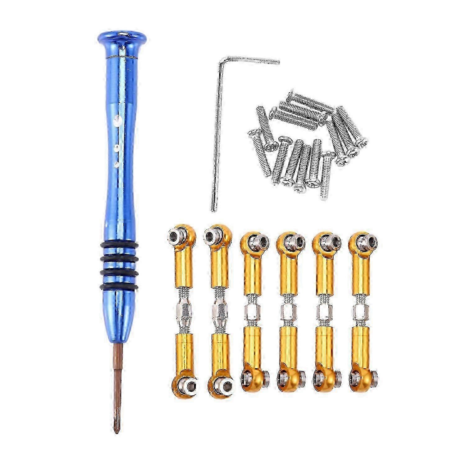 Adjustable RodsFor Vehicle Type: CarsUse: Vehicles and Remote Control ToysRC Parts and Accs: Adjustable RodsUpgrade Parts or Accessories: Adjustable RodsRemote Control Peripherals or Devices: Adjustable RodsFor Vehicle Type: CarsUse: Vehicles and Remote Control ToysRC Parts and Accs: Adjustable RodsUpgrade Parts or Accessories: Adjustable RodsRemote Control Peripherals or Devices: Adjustable RodsFour-wheel Drive : Adjustable RodsTool Supplies: Adjustable RodsItem: Metal Adjustable RodsUsage: for A959B A969 A979 K929 rc car.colour:YellowMaterial:metalPackage Contents:6xPull Rod Linkage1x screwdriver1xHexagon screwdriver1xScrews setOnly the above package content, other products are not included.Note: Light and different displays may cause the color of the item in the picture a little different from the real thing. The measurement allowed error is 1-3cm.