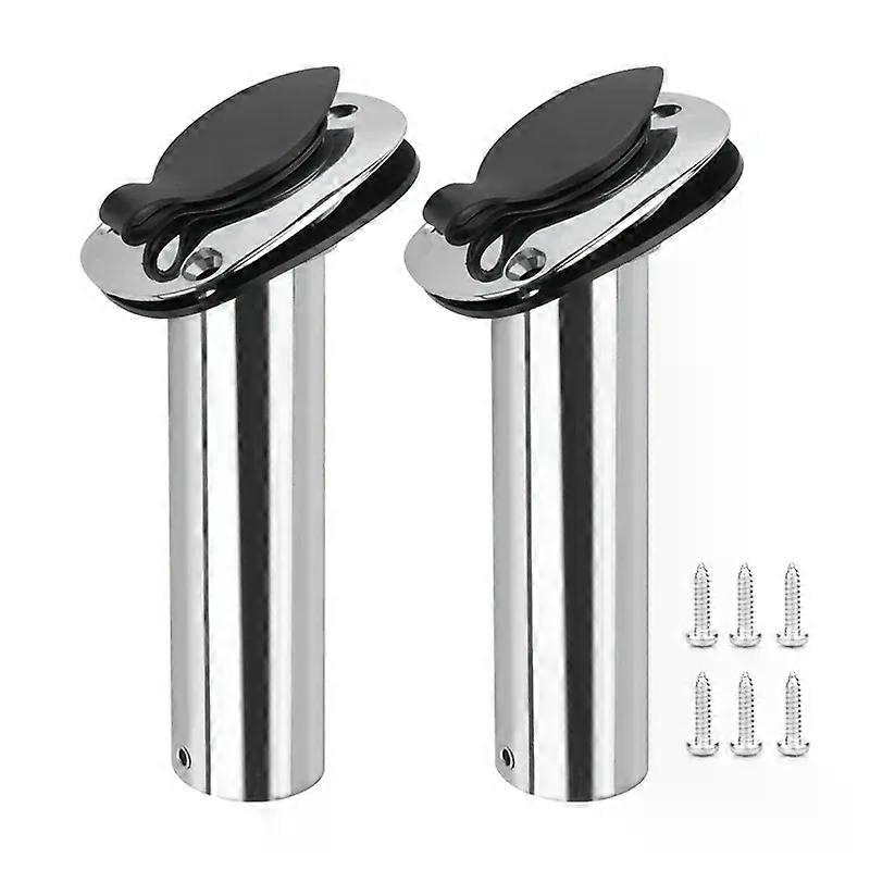 ABJM-2 Pieces Marine Stainless Steel Fishing Rod Holder Recessed 15 Degree With PVC Cover Inner Tube And Washer