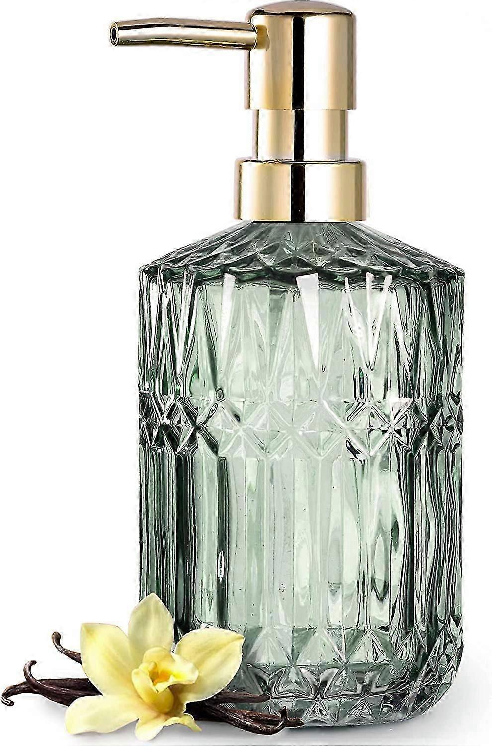 Clear Glass Soap Dispenser with ABS Plastic Pump, Crystal Lotion Dispensers for Kitchen Sink, Bathroom (Green)