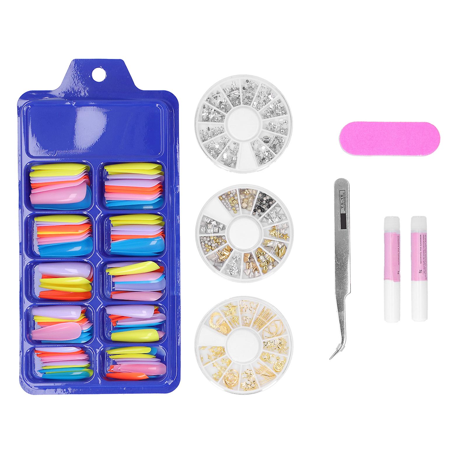 ABS Long Colored Fake Nails Artificial Full Cover Nail Manicure Tips Stickers with Case