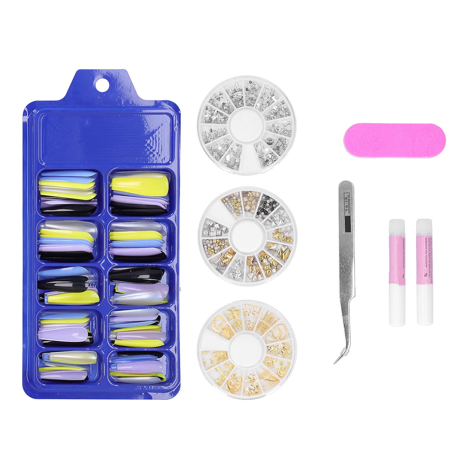 ABS Long Colored Fake Nails Artificial Full Cover Nail Manicure Tips Stickers with Case
