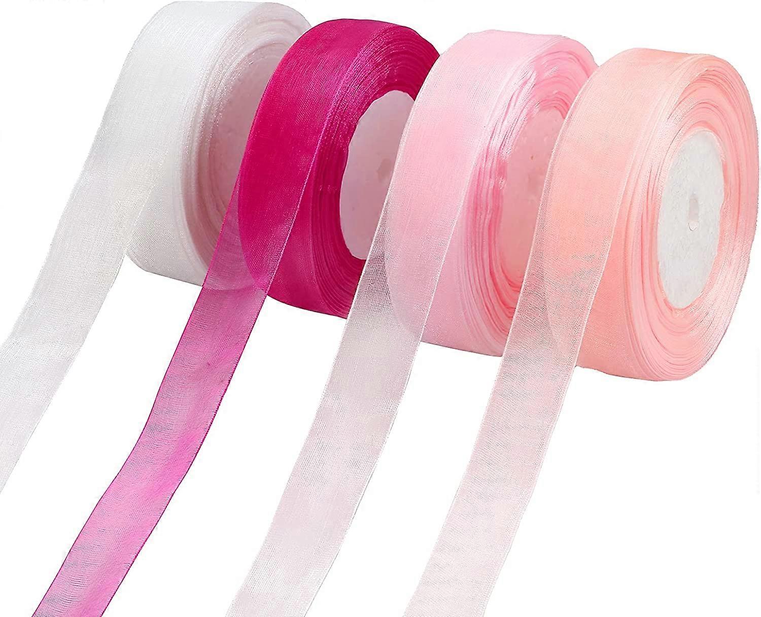 Acsergery Honmok 4 Rolls Organza Ribbons Pink Series Sheer Chiffon Ribbons Silk Organza Gift
