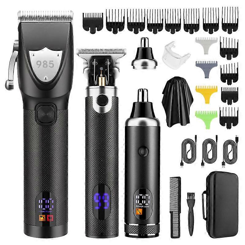 Large Capacity Battery & LCD Display- The LCD display clearly shows power left, oiling reminder, and charging reminder. support two ways of use, wired and wireless, The USB cable can compatible with any USB charger interface, Hair clippers charging 2.5 hours use time 150 minutes, Hair trimmer charging 2 hours to enjoy 180 minutes of trimming, Nose trimmer charge 1.5 hour use time 150 minutes