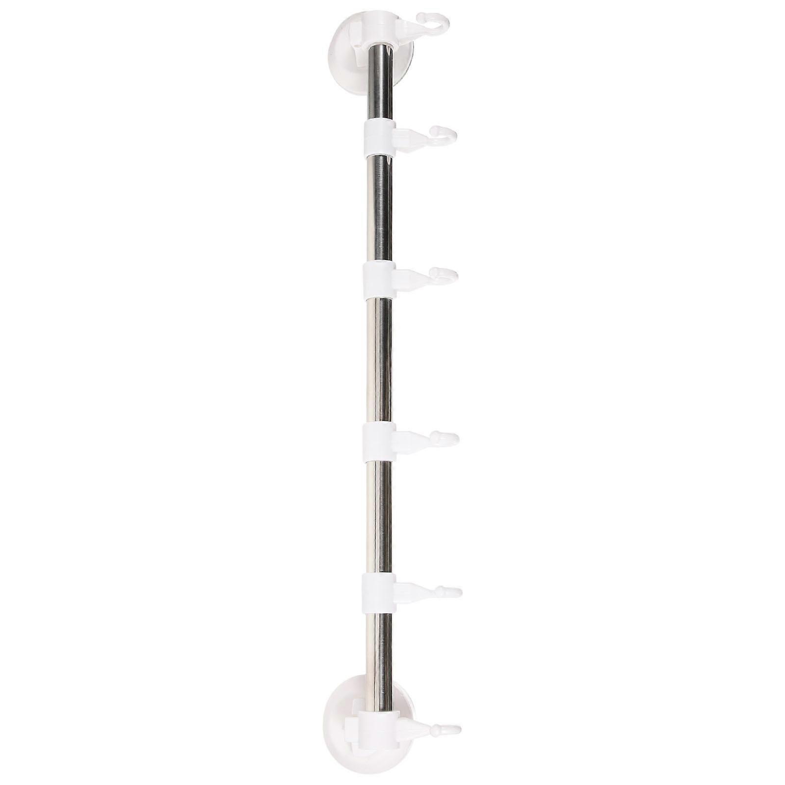 Adjustable Towel Bar Rack For Bathroom Storage With 6 Hooks Durable Structure Suction Cup Technology 2Pcs