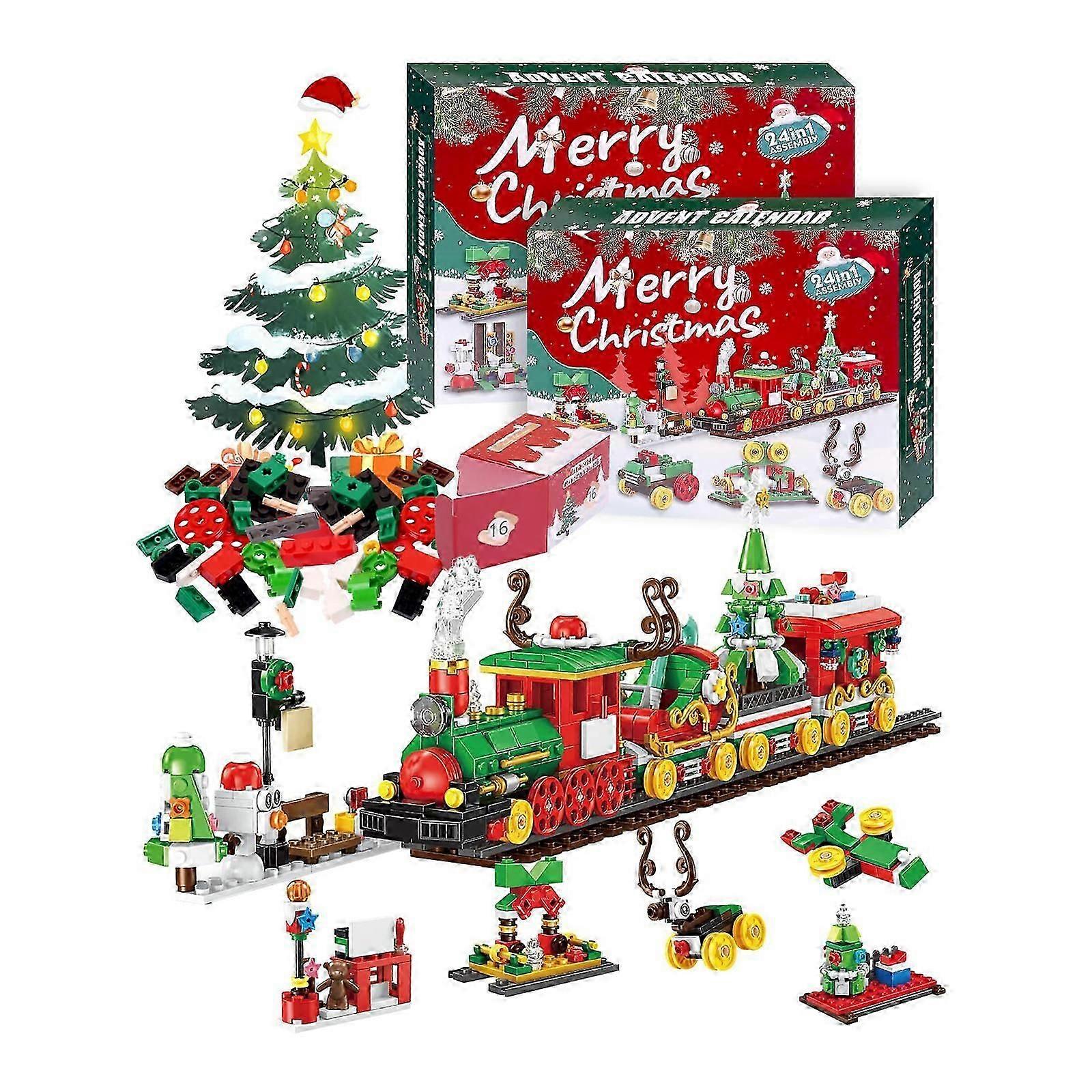 Advent Calendar 2025 Christmas Train Building Blocks Set, 24 Boxs Surprise Christmas Countdown Toy Building Kits With LED Light-