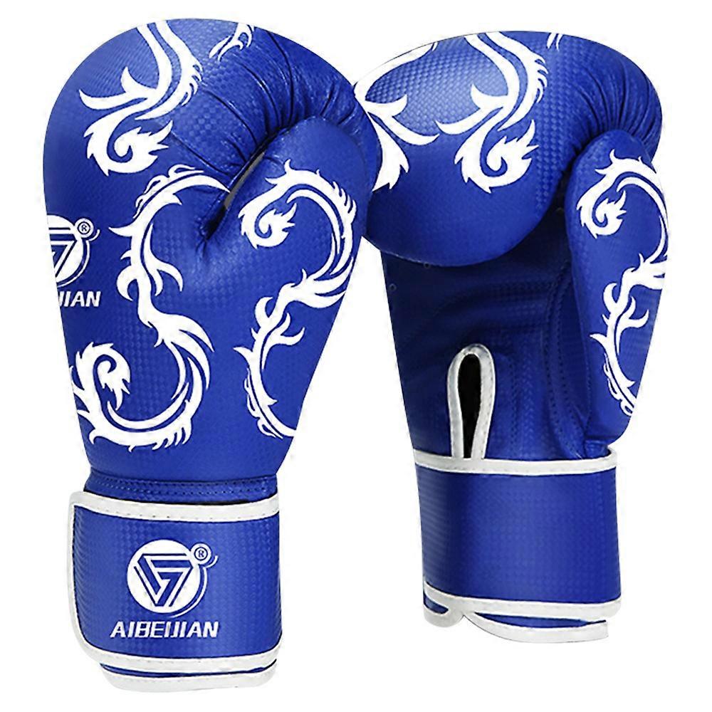 AIBEIJIAN 12oz Adult PU Mitts for Muay Thai MMA Wave Pattern Boxing Gloves-Blue