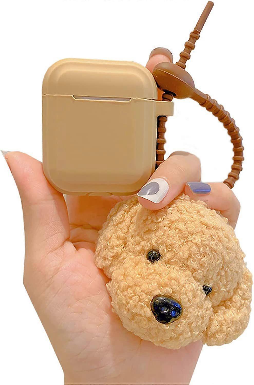 ComfyArt Earphone Case for Airpods 1/2 with Cute Plush Teddy Pendant Soft Silicone Khaki Shockproof Protective Headset Case for Girls Women Men Earpho