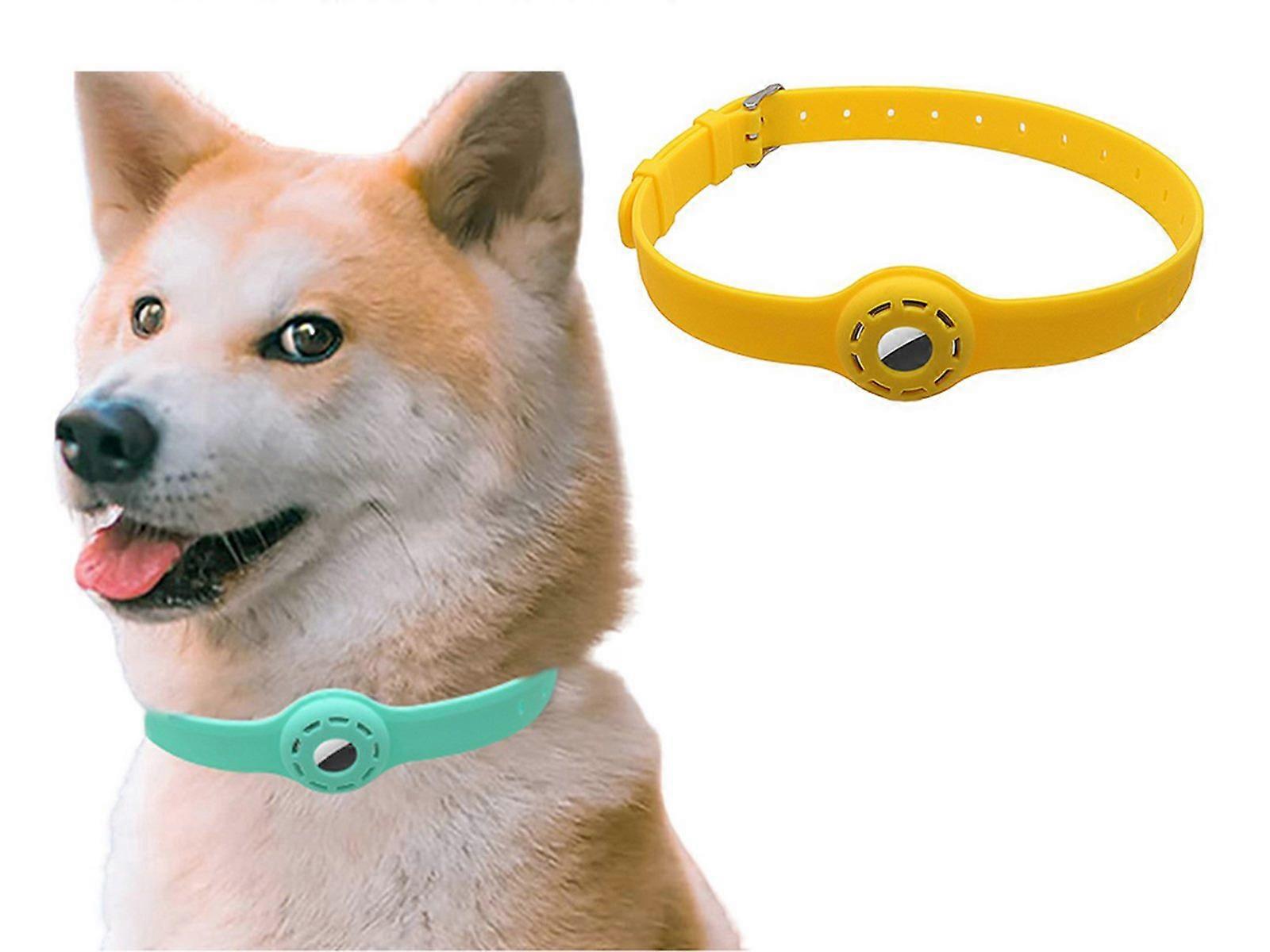 2PCS Silicone Pet Collar with Protective Case for AirTag Green Yellow