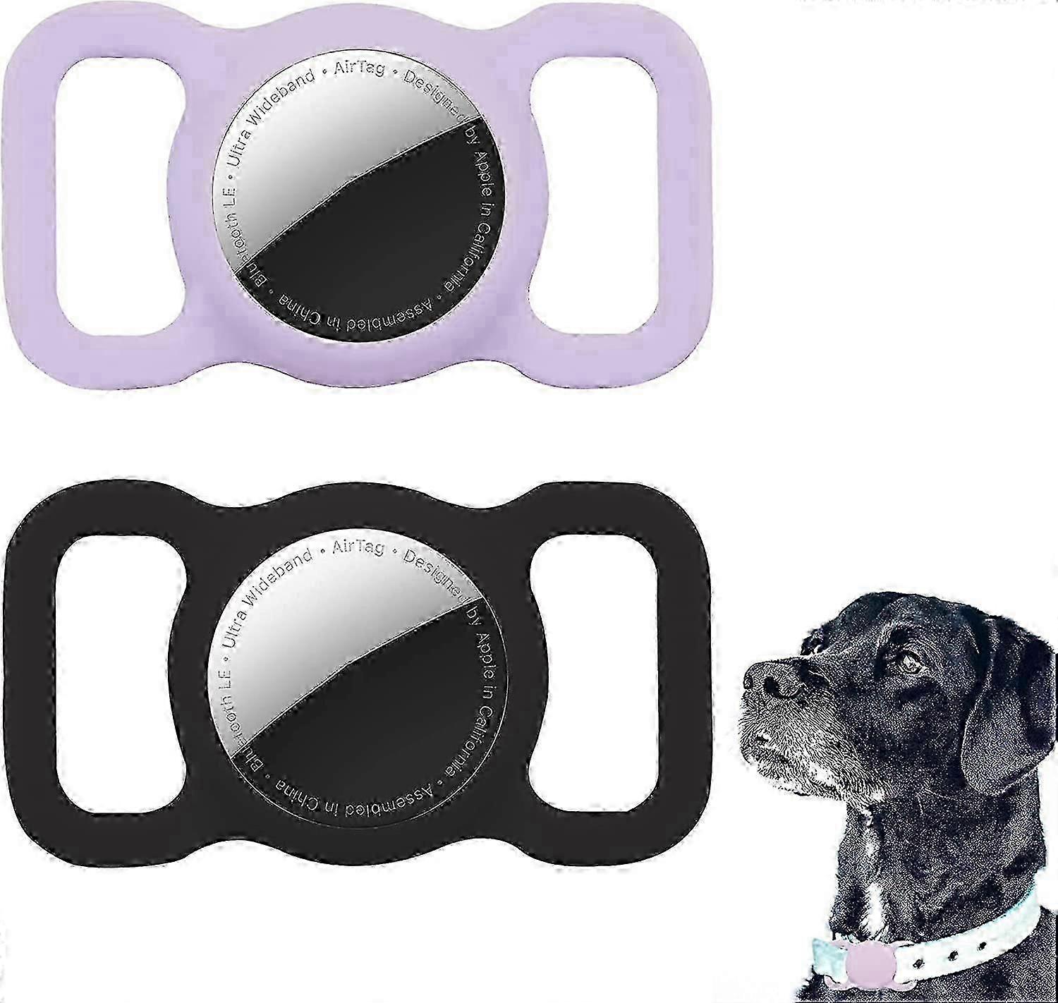 Protective Case Compatible for AirTag 2021, 2 Pack Silicone GPS Finder Dog Cat Collar Pet Loop Holder, Lightweight Anti-Scratch Anti-Lost(Black+Purple