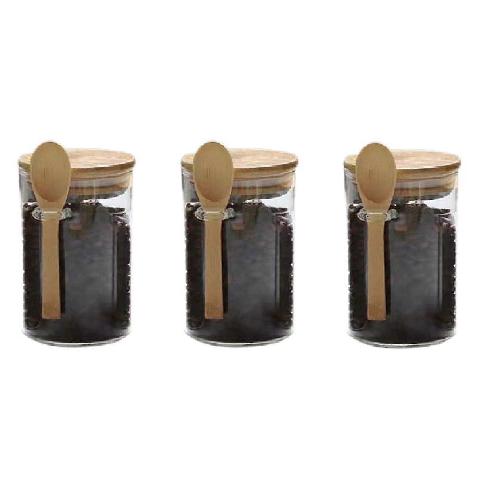 Airtight Glass Jars with Bamboo Lids & Bamboo Spoons - Decorative & Durable Glass Canisters Hold Beans, Tea, Sugar, Nuts