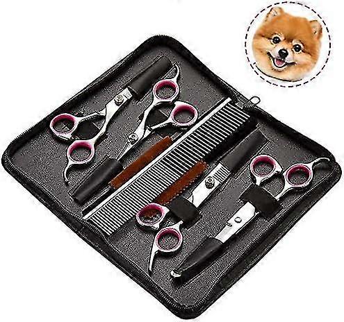 Aixmeet Dog Scissors, 4 Piece Titanium Coated Stainless Steel Pet Grooming Tool Set, Thinning/straight/curved Shears And Comb