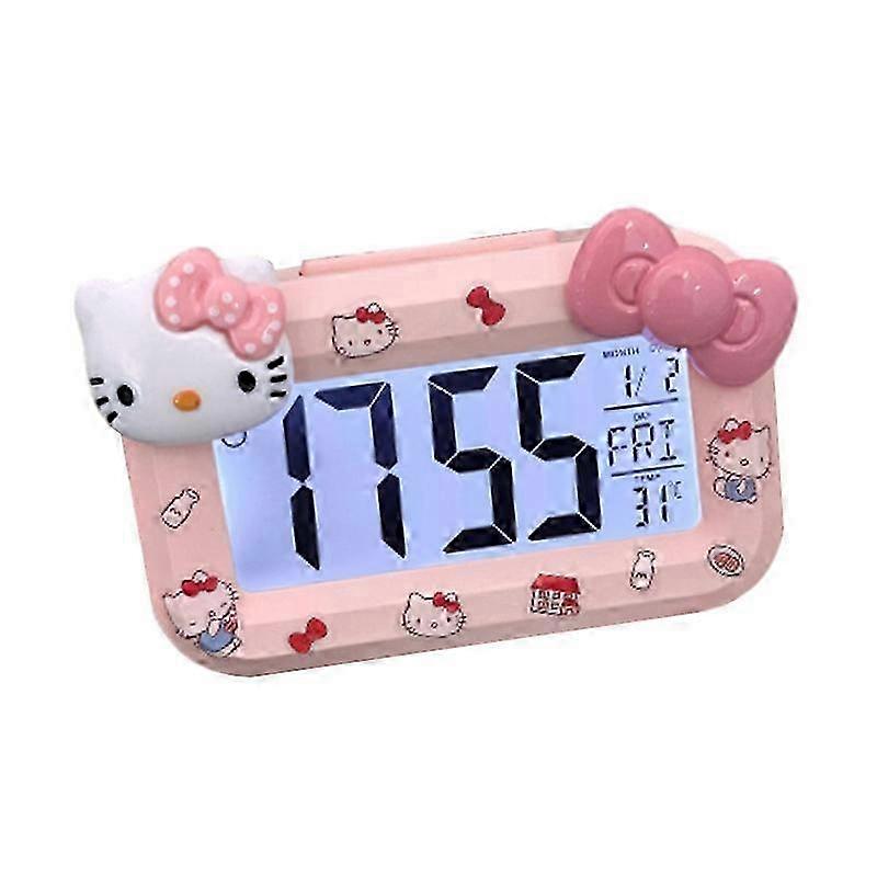 Alarm Clock, Mini Cartoon Cat Noctilucent Alarm Clock with Time Temperature Display, Night Light, Dormitory Desktop Ornament for Students