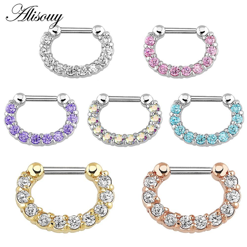 Alisouy 1 Pc Surgical Steel Prong Set Zircon Gem Septum Nose Clicker Piercing Ring Septo Body Jewelry Nipple Helix Tragus 16g