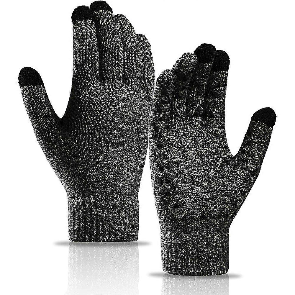 Amazon Brand - Hikaro Men's Women's Unisex Knitted Gloves, Non-Slip Touchscreen, Thermal Fleece Sherpa Lining Gloves for Winter Outdoor Sports